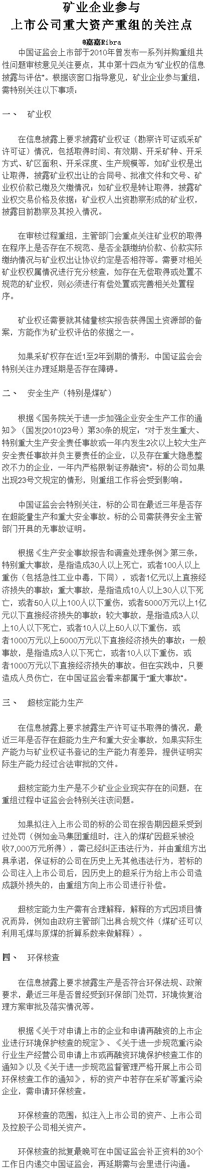 矿业企业参与上市公司重大资产重组的关注点     (2013-5-22 13:56:56)